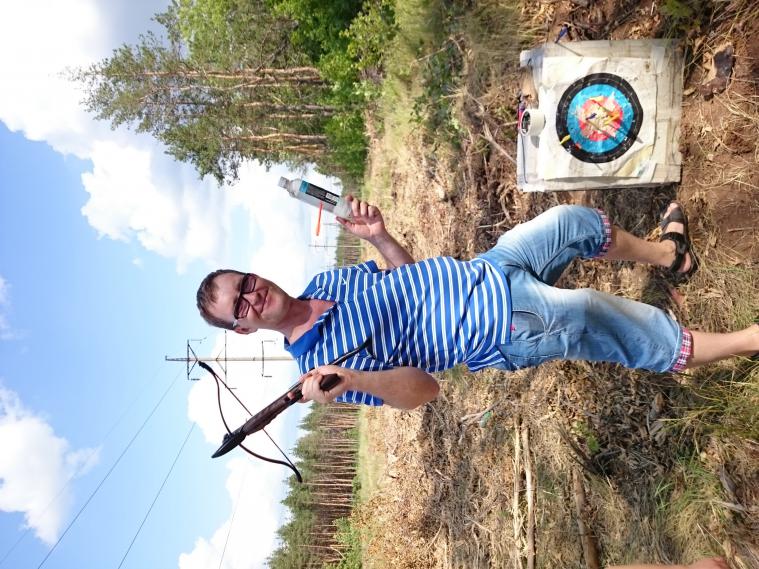 Дык переходник надо и углекислотный огнетушитель или узнай где их заправляют,я к сожелению не в курсе!Вот с товарищем и его сынишкой постреляли из лучков и арбалетов за южным кольцом на просеке ЛЭП)) думаю можно из пневмата на соточку зарядить,сам из рогатки в столб попал.дальняка не было но метров 60-70 примерно.Стрелы дорогие)) потеряли одну,но потом нашли!