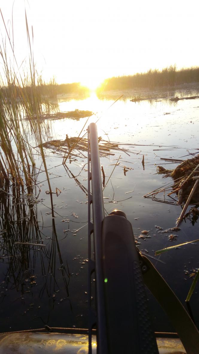 Так как я в этих угодьях охочусь первый сезон он посвящается разведке. Приметил озеро на прошлых выходных. В пятницу стартанул на вечерку туда, при заходе поднялась пара крякашей. Проплыл озеро до конца оно сильно заросшие камышем и через маленькие проходки есть баклужинки, досконально изучать не стал вернулся где заходил, там более менее большой плеч. Плыву себе плыву думаю где чучела раскинуть тут в пятнадцати метрах встает крякаш я его лишь взглядом проводил так как он над кустами поднимался и не хотелось мне там лазить и не найти. Просидел, видел только одного крякаша, который срисовал меня пока я переплывал на другое место. Так и уехал пустой. Домой приехал, к больной жене прибавилась еще дочь с температурой.
