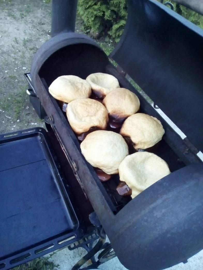 Угли набрали жар и горшочки отправляются в мангал, по времени стояли они 50 мин. Крышки из теста стали хлебом пропитанные дымком и ароматом самого блюда. Ну и чуть чуть по писят с соседом домашнего напитка за хорошую погоду и хороший сезон 2017.