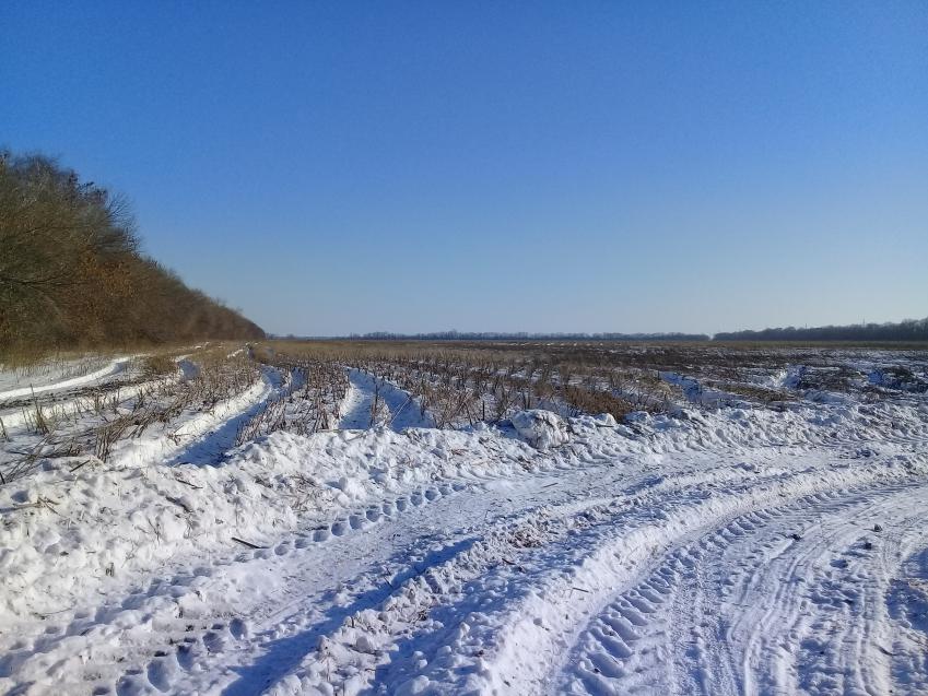 Я пошёл дальше вдоль лесополосы. Вышел в камыш, и в него след, я подумал что это тот, гонный. Нет, это другой... я в сомнениях. Вернулся к гонному... нет, в камыш пошёл другой заяц! Я вернулся, полез через камыш проросший ивняком. Вышел в поле и вижу как в ста метрах в поле вышел заяц. Стрелять не реально. Проводил взглядом с досадой и вернутся к гонному. Попил чаю и пошёл за ним. Я шёл долго... очень долго)))) я надеялся что он ляжет в поле. Но он ушёл через трассу в другие угодья. Что делать?? Я практически вернутся к машине. Время 13:00. Что домой ехать? Нет... ещё до темна 4 часа. Я собрался духом и вернулся к той посадке))) встал на след. Топтал, топтал его... в итоге вышел на лыжню... понял что утренний конкурент его уже тропит. Пришлось вернутся к машине, так как уже солнце начало подходить к горизонту. Вот такая прогулка получилась сегодня. Я опять ездил в новое место. Так скоро всю область разведаю))))