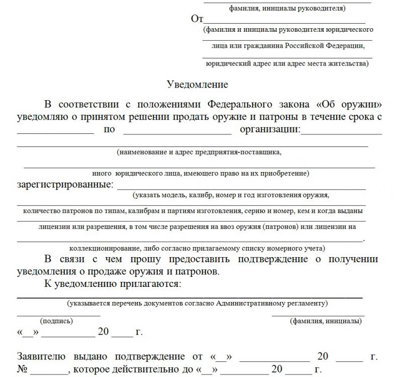 (услуга: "Выдача подтверждения для продажи оружия (патронов) при получении уведомления о продаже оружия (патронов)")