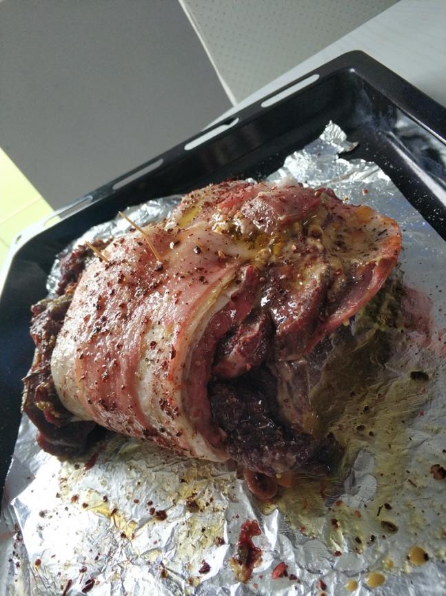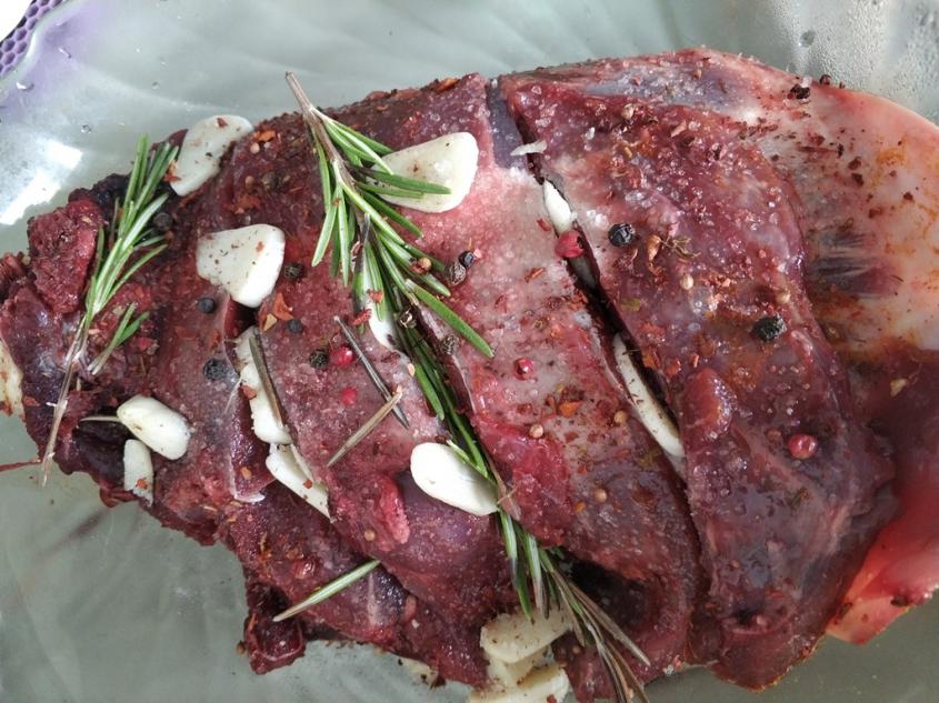 А я в выходные достал лопатку косули (козлика) и решил запечь в духовке. Смотрю тощеват...)) Достал ребра барашка и в них завернул кусок лопатки. Маринад видно на фото: масло оливковое, приправы, соль, перец, чеснок и розмарин. В духовке при 180 градусах запекал часа полтора, потом добавил картошечку и еще 30 минут. Очень всем понравилось! Приятного аппетита!