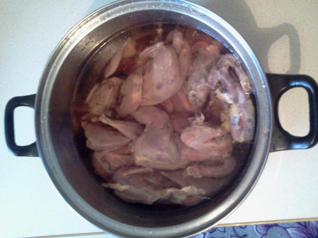 Свежедобытого зайчишку приготовил по простенькому рецепту в горшочке со сметаной.