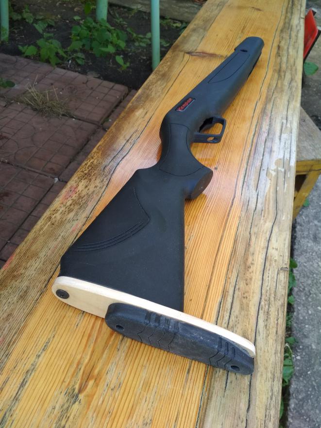 А к чему это я? Да вот не подходит стандартная пневматическая винтовка под спортивную стойку (удержание). Для стендовой стрельбы норм, для практической наверное. Но это же пневматика. Вот и решился отпилить приклад и перенести затыльник. Теперь вслепую вскидываю ружбай. Приклад ложится как влитой и гребень четко в скулу. Спуск переточил под спортивный. Вот бы еще спусковой крючок на 1см перенести поближе.