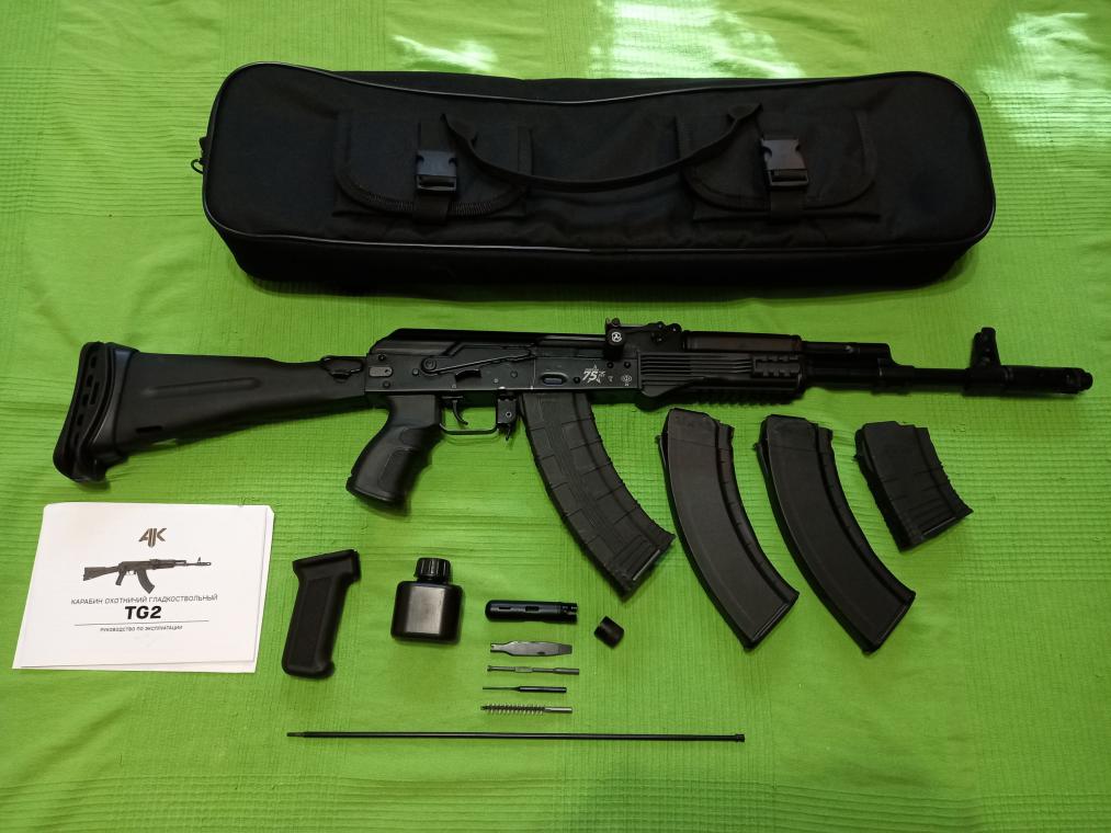 Продам карабин Сайга TG 2 калибр .366 TKM, 2020 год выпуска, в г. Самаре. Карабин куплен в мае 2020 года, хорошее состояние, рама карабина ровная, мушка и газблок стоят ровно (не завалены), хром внутри канала ствола равномерный, нарезы чёткие, дульный срез правильной формы, настрел около 400 выстрелов, грамотная чистка и уход. С карабином отдам 4 магазина – 2 стандартных от КК на 30 патронов, 1 от С.К.О.С. на 30 патронов и короткий от той же фирмы на 5/10 патронов. Все магазины обкатаны, работают штатно. Так же отдам чехол и стандартный набор по уходу, который идёт в комплекте с завода (шомпол, маслёнка и пенал с принадлежностями).