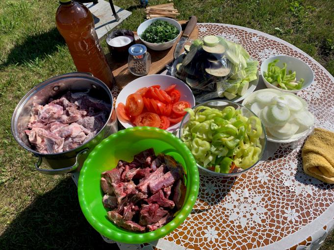 Готовил Хашламу не единожды, решил записать видео со своим рецептом. Смотрел видео в Ютюбе, ну прям Супер-мега-сложное блюдо, по 20-30 минут рассказывают, как готовить… Я использовал мясо кабана, ребрышки и мясо на кости. Набор овощей очень разнообразный (использует кто что), но принцип готовки почти всегда один – в казане. У меня казан и печь от друзей - @ , у них самые дешевые цены и самая качественная продукция. Это блюдо многие готовят на воде, большинство на пиве, я же добавляю 0,5 л. воды и пару литров пива – почему то именно так мне нравится больше всего. 1. Ингредиенты в описании: - мясо кабана на кости – 3 кг. - баклажан – 3 шт. - кабачок (цукини) – 4 шт. (мелкие). - лук – 6 средних луковиц. - чеснок – 1 головка. - помидор – 1,5 кг. - болгарский перец – 1 кг. или 10 шт. - морковь – 2 шт. - зелень – петрушка и укроп – по пучку. - пиво светлое – 3 литра. 2. Готовил так: Масла растительного налил грамм 100 и запустил в него, как нагрелось, ребрышки, далее по кругу уложил все овощи слоями – баклажаны, цукини, лук, перчик, морковь, помидор (она всегда последим слоем), следом добавил мясо на кости и снова один слой всех овощей. Сверху добавляем чеснок и зелень порубленную. Каждый слой мяса солим, остальные слои (овощи) на Ваше усмотрение, но лучше посолить потом (жалко будет очень если пересолите). Как закипел бульон, постарайтесь убавить жар и томите на медленном огне в течении 2,5 часов. Подавать со свежей порубленной зеленью. Рюмка водки под такое блюдо крайне необходима! У меня друг приезжал, поэтому мы постарались изобразить рецепт во всех красках… Мясо отстает от кости, очень мягкое и сочное… P.S. Никакого алкоголя в Хашламе не остается (все выпаривается), остается только привкус ржаного свежего печеного хлеба, поэтому это блюдо кушают все, даже дети. |