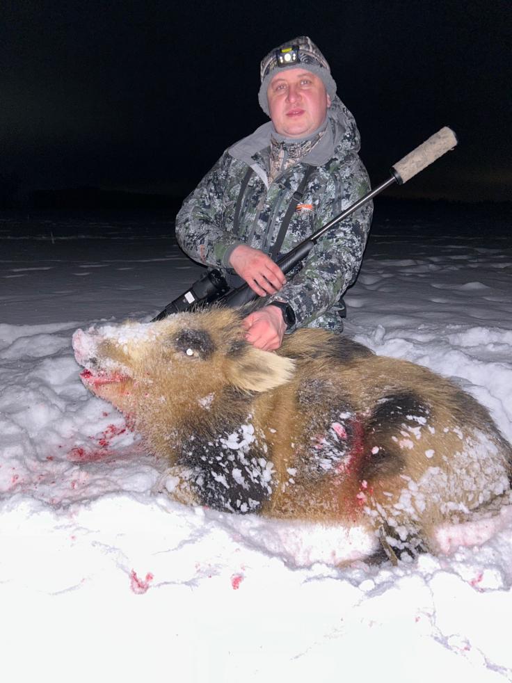 Пятнистую сеголетку с подхода, секача с лабаза. Под завершение сезона две охоты - два трофея, крайний 21.02. добыт. Теперь гусей ждем...)) |
