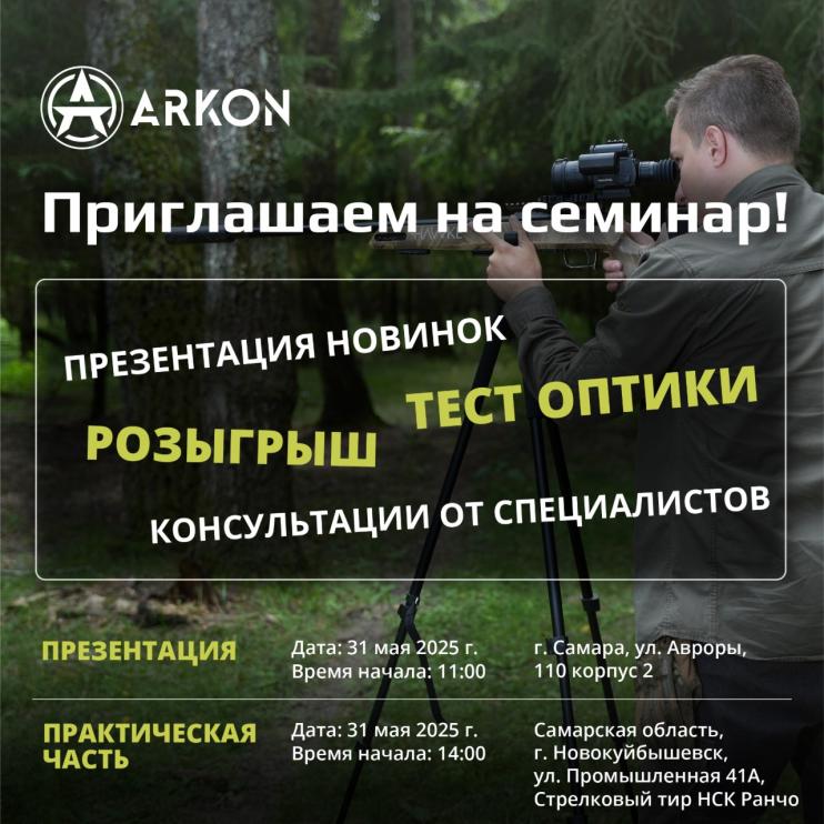 11.00: Самара, ул.Авроры 110 корп.2, магазин «Оружейный двор» 14.00: Самарская область, Новокуйбышевск, Промышленная улица, 41А НСК Ранчо - практическая часть 🎯 Тема семинара: "Оптика нового поколения ARKON: технологии, советы, практика" 🔥 Мастер-класс от Arkon: от теории к практике — научись использовать оптику на максимум! 📋 Программа мероприятия: 🔹 Презентация новой линейки прицелов и тепловизоров Arkon Узнайте, какие новинки ждут рынок в этом сезоне и чем они выделяются на фоне конкурентов. 🔹 Живой мастер-класс и практическая стрельба Пошаговое объяснение всех функций и режимов — с акцентом на реальные сценарии применения. Проведем тестовые стрельбы в СК «Ранчо»! Все участники смогут лично пристрелять оптику! 🔹 Сессия "Вопрос — Ответ" Эксперты компании готовы к открытому диалогу: всё, что вы хотели спросить про Arkon. 🔹 Розыгрыш главного приза 🎁 Лазерный дальномер ARKON — новейшая модель с расширенными возможностями. Количество мест ограничено! Участие бесплатное. Предварительная регистрация обязательна. |