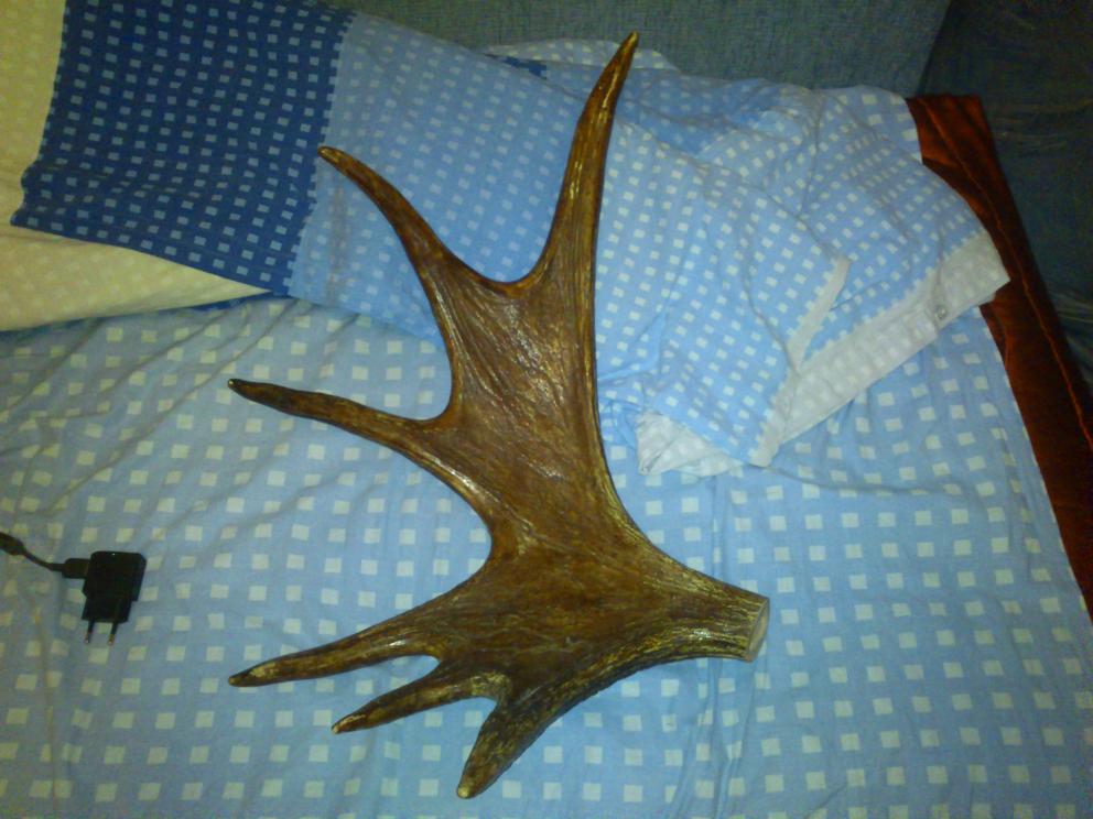 В прошлом году на пруду в лесу нашёл большой рог с лопатой,сколько отростков не помню но рог был большой,там же его и оставил.
