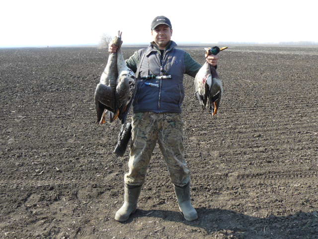 Всем привет. Наконец то руки добрались и до компа. Всех, к кому фортуна была благосклонна, С ПОЛЕМ!!!!! Мы закрывались аж три дня. Приехав в 3 утра в пятницу к облюбованной снежнице в поле, делаем скрадок на границе озимых и прощлогоднего подсолнуха. рассаживаем профиля, по кружечке чая, авто отогнали подальше, чтоб потом ни в чем себя не упрекать. Время 4-30, а у нас все готово. Утки, кулики орут, гусей слышим что в поле сидят..... красотища короче. Душа радуется. Место-великолепное, три раза на неделе в 2 вставал и мотался с товарищем на разведку за 170 км. Сидим, балдеем. Забрезжило, утвы мотается несметное количество - игнорируем, не за ними приехали. Слышим: ГАК-ГАК со стороны восхода. Все, началось, буквально врастаем в землю и им тоже в два горла : ГАК-ГАК. Налетает чуть стороной тройка, облет, ушли..... через три минуты летит стайка, голов 30. По земле стелятся. Прямиком на нас. Мы им контрольный: ГАК-ГАК. Все, почти наши, уже подлетают к снежнице и им под перо, кто то с другой стороны снежницы БАХ БАХ, двое выпали. Разумеется остальные в сторону, вверх и от нас уже и далеко и высоко................ Назвать все это разочарованием, не сказать вообще ничего. Снежница занята, заря накрыта женским половым органом, собираться долго... короче как то не срост с самого начала. Делать нечего, собираемся, ноги в руки и оттуда. Собираемся с мыслями и решаем остаться на этом же поле, только с другой стороны, благо нашли еще одну снежницу. не такую большую как предыдущая, но вариантов больше нет. Зная, что гуси прилетают на поле в основном на ночлег, решаем окапываться днем. Лопаты в руки и погнали. Через часа 3 все ямы готовы, профиля выставлены, относим лишнее, отгоняем машины в посадку. Гуси иногда радуют своим присутствием в небе. Сельчане начали уже поле наше бороновать, но с трактористом Леонидом заключена договоренность объезжать нас подальше, и была подкреплена литрушечкой белой. Короче надеемся. После обеда подъхало наше подкрепление. Покушали, по 100 бевых и в бой. Мы по "норам", подкрепление на воду в 1,5 км от нас. Сидим ждем. С гусем не густо. Получилось подсадить стайку, но, как назло, сели напротив нас с другой стороны лужи. Метров 100. Сидим любуемся. Те попили, походили, наших замерших спалили и свалили. Больше налетов не было, проходили высоко, на нас не отвлекаясь. Стемнело, выходим к машинам. Подкрепление оказалось более удачливо и в нашей копилке появился белолобик, налетевший к профилям и красавчик зеленоголовый. Уставшие кушаем, по чуть чуть "С полем", уставшие спать. Вся надежда на утрянку. Затемно мы уже в "норах". Утва мотается, мы своих серых ждем. Налетает одиночка. Ну, думаем, разведчик. Над нами кружок и дальше поле осматривать. Наблюдаю за ним в бинокль. Смотрю летит над нашей "первой" снежницей. Бах,бах, бах....... улетел он. Больше не возвращался. Скукотища, гусей особо не видать, решаем поразмяться по уточкам, пара свиязок, чирок. Ну, хоть что то. Время к 10. Надо же блин, приспичило меня, по серьезному. Как то в чистом поле не с руки)))) пошел до посадки, почти км))) Отстрелялся, так сказать, опа-звонок. Товарищ звонит из ямы: "Леха, тут гуси снова сели напротив нас, с другой стороны". Короче делаем загон ))))) я крадусь к гусям в надежде что они меня спалят и налетят от меня на моих коллег )))) Короче, тигра представляете, который стелится по земле, вот он бы мне позавидовал. Короче, поднима