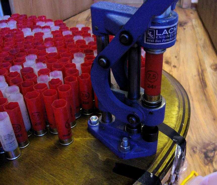 Внесу и свои пять копеек. Нужно было срочно снарядить патрончиков на вечерку, а гильзы дома остались только те, которые мне давал товарищ. А у меня патронник 18,2 и эти гильзы не лезут, донце подуто (однажды на охоте по неопытности в горячке и на адреналине, загнал одну такую, потом стачивал юбку, чтобы достать патрон, много времени потерял) Что делать? Когда то в "Тульском" купил обжимное кольцо, хотя продавец сказал тогда, что это прогонное. Достал его, вставил гильзу, смотрю донце просто упирается. Взял круглый напильник, снял фаску, поширкал внутри кольца, чтобы было гладко. И начал думать как быть дальше. Вышел на балкон и обнаружил вот такие приспособы. В кои то веки ремонт дома пошел на пользу...