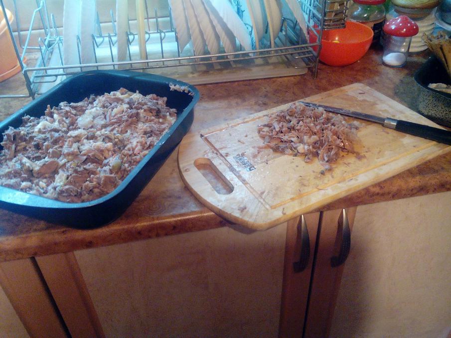 4. Утром разбираю все: хрящи и мясо от костей. Если все было правильно, то кости жуются.