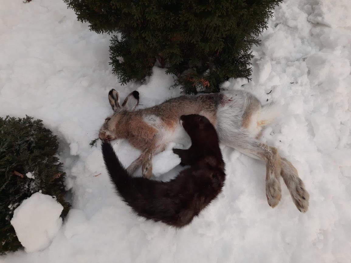 Всем привет. На зайцев я специально не охочусь, но попутно бью, и кстати, получается прекрасно). Вот и при очередной проверке путика надыбал зайчишку , пять минут и он оказался на неожиданной для себя фотосессии. К нему присоединилась и не маленьких размеров норка, которая не смогла пройти мимо половинки ондатры)- жадность и самоуверенность и не таких губила)