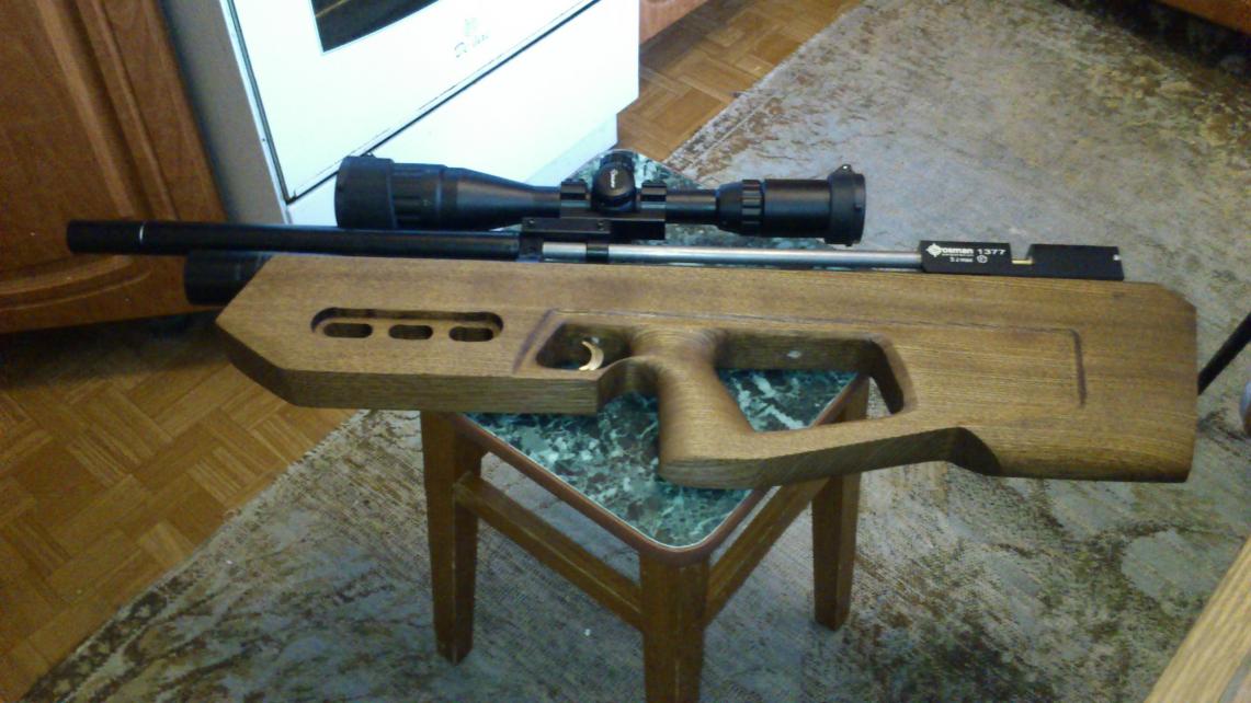 Собрал!!!Длинна 75 см.от модера до затыльника.Теперь нужно декоративные болты сделать и ложе закрепить красиво.А!Да!Нужен мостик ласта-ласта,прицел низко стоит,даже на кроне с выносом.Может есть у кого?Могу заказать,да ждать терпежу нет.Я куплю!!!Предложите.