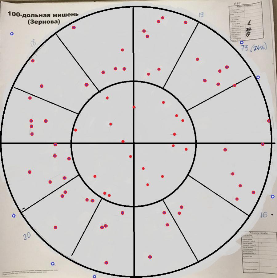 Не могу не отметиться! Мало у меня хороших результатов, но из крайних запомнился один: Гильза Азот (новая), Капсуль СХ2000, Порох - Drago (1,58 гр.), ПК Чедит Н22, Дробь №6 (32 гр.), Звезда с подкруткой. Стрелял и в морозец и в тепло, результат очень понравился. Вообще Драго очень нравится своими свойствами: сгорает полностью, отдача мизерная... весь импорт пока в стороне...