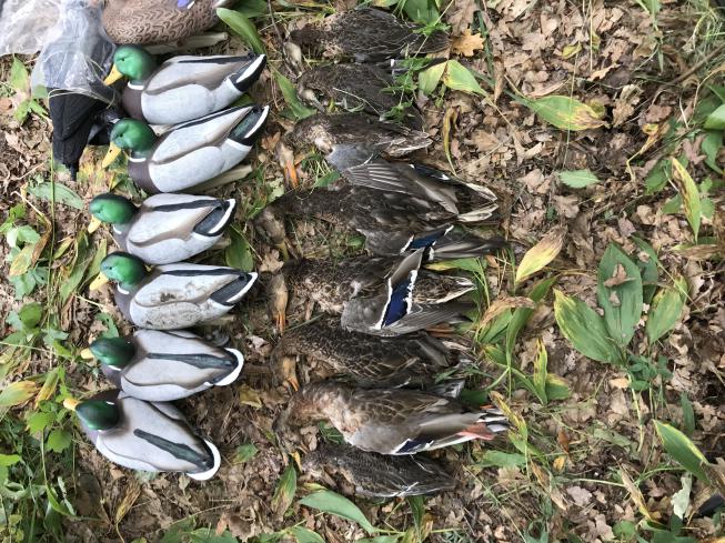 Открывались с товарищем 17.08 в "Пойменном". Вторая осенняя охота в жизни. Подготовили "чУмАЗика", загрузились и в обед выдвинулись. Подготовили лагерь, перекусили, и пошли обходить примеченное еще в прошлом году озерцо. Поднялось штук 10, не дав подойти. Вечорку решили стоять на соседнем, поэтому, полезли туда, чтобы поднять из камышей утьву и пострелять по возможности... Заходим с двух сторон, на воде только хлопунцы, утка не поднимается, иду вдоль камыша.. Через метров двадцать начались подъемы партиями штуки по 4-6. Первая пошла в сторону от меня, вскидываюсь, выстрел, и классический "штопор" на водную гладь! Есть! Первая в сезоне! Дальше пошли одна за одной, но все за головой и за спиной, стрелять неудобно, да и идут на напарника, но он что-то молчит (рации не взяли). Ну, думаю, заклинило ружье видимо. Расставили чучела, подготовили засидки, стали ждать вечерки. Летало хорошо, чирки без облета чуть не на чучела усаживались, стайки кряквы неплохо на манок разворачивались и снижались на выстрел. В целом, это была лучшая охота)) Конечно, жаль, что троих не удалось нам найти по итогу (видимо подранки), но результат в целом очень порадовал. На утрянке тоже хорошо летали, хоть и недолго, но четверых мы уговорили пойти с нами)