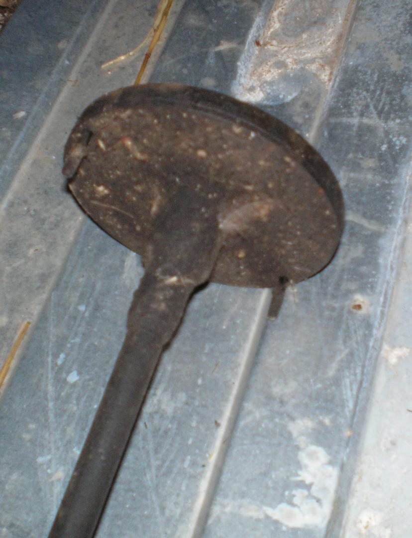 Вынимаем все это и опускаем в, рядом стоящее, ведро с техническим маслом (любое, я использовал отработку) для охлаждения, 5 сек в масле и в очередное ведро для готовой дроби, выжимаем рукоять - дробь высыпаеться.