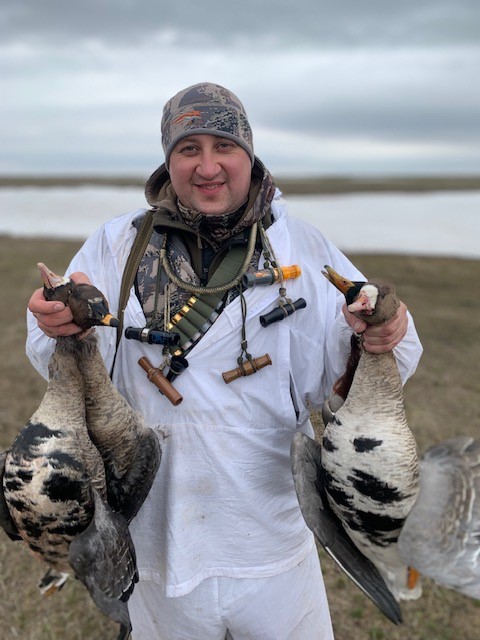 С друзьями сначала охотились в Саратовской 5 дней, потом 3 дня в Самарской, потом уехал на охоту в Пензенскую. Отпуск дали, просто супер. Гуся было маловато, гуменник вообще почти не контактировал, но без гусей не остались. немного фото с охот приложу. Добывших - с Полем! |
