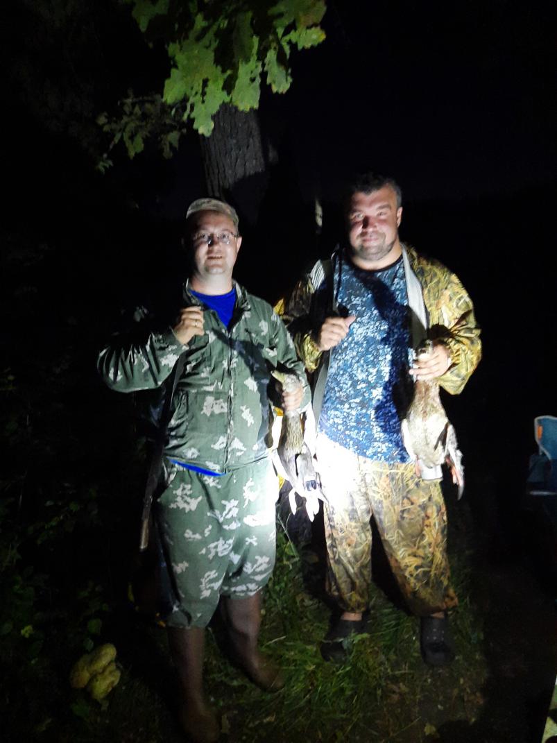 в субботу вечером добыли 3 кряквы. Вечерняя редкая стрельба началась с разных сторон Волги в 20-00 часов, но как то редко. у нас вообще не было намека на птицу. А вот в 20-55 появились первые налеты. Впервые на открытии видел летающие стайки утей, вот из одной стайки на манок две отделились и к нам) , одну взяли. Лет был до 21-20, уже в сумерках одиночки мотались. Луна встала только в 23-00 и стало как днем светло.