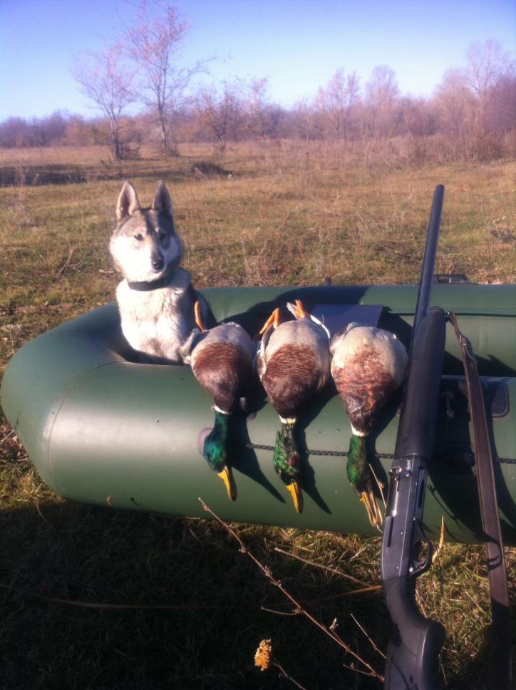 Охота сегодня выдалась крайне трудовой! Зашли на озеро по ледку, а на обратной дороге он стал толщиной 1 см и более. На ПВХ -жесть. Мазали нещадно, списываю на две толстых куртки (хотя,кого я хочу обмануть??? Криворучка я). Свалили трех (хотя должне были не менее десятка) один в камыше остался не найденным