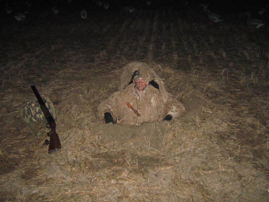 Сделав работу над ошибками,появился результат.Манить стали умеючи,переделали маскировку,перестали лениться рыть яму, на троих приобрели 70 полнокорпусных чучал и главное переосмыслили весь процесс охоты на гуся.На шару охота на гуся не получится. Теперь главное разведка: поиск кормового поля, поиск гусиных испражнений.