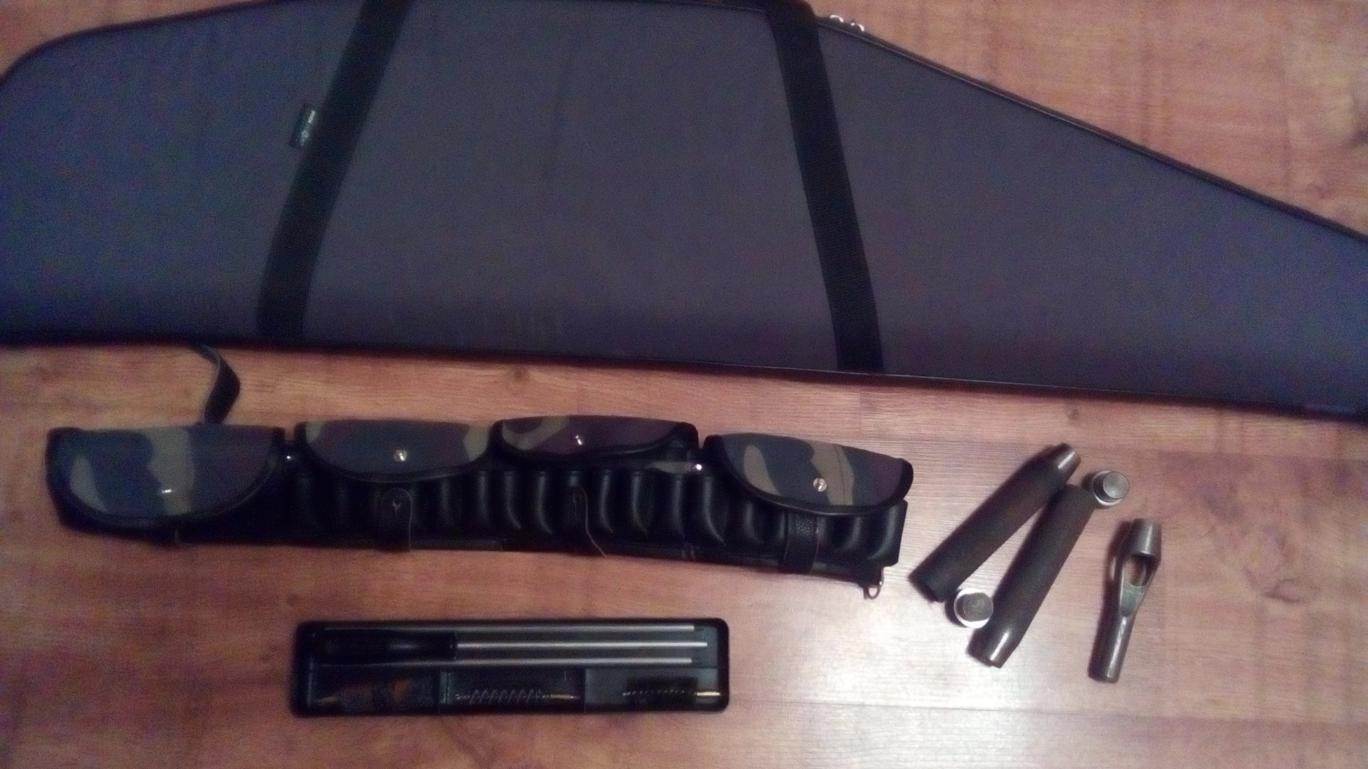 Чехол STICH PROFI под карабин с оп, 110см, внутри паралон, не рваный, не штопаный, 1000р, патронташ комбинированный (кожа, ткань) на 24 патрона 12кал 800р, набор пыжерубок 12кал 600р, набор для чистки ружья 20кал 400р.