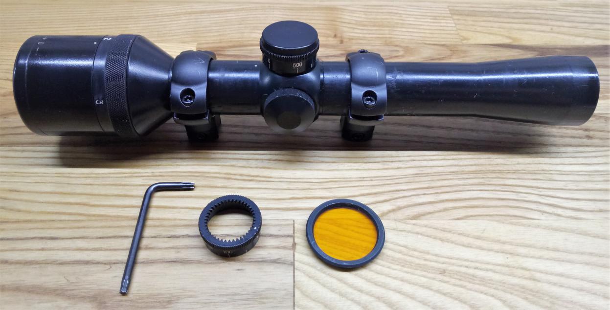 Кратность переменная от 2 до 6 крат; Диаметр окуляра 39 мм; Посадочная поверхность 26 мм; Сетка Т-образная, с острым пеньком и тонкими вертикальными штрихами для поправок на ветер и определения расстояний. В комплекте: Прицел, светофильтр, две шкалы дистанций для 7,62х54R и 7,62х39, копия инструкции. Могу укомплектовать стальными кольцами на ласточкин хвост +1000 руб. Прицел позволяет вносить поправки на дистанцию вращением верхнего барабанчика, размеченного до 500-та метров (разметка соответствует баллистике потрона 7,62х54R (Мосина, Тигр, Вепрь и пр.), так-же в комплекте шкала дистанций для 7,62х39 (СКС, Сайга и пр.) ; посредством вертикальных тонких штрихов вносить поправки на ветер а также измерять расстояние до цели (порядок описан в инструкции). Состояние хорошее. Минусы- есть потёртости краски от колец и соринки на стекле. Тяжелых калибров не видел, использовался на мелкашке ТОЗ-78, зарекомендовал себя отлично. Цена: 4500 рублей.