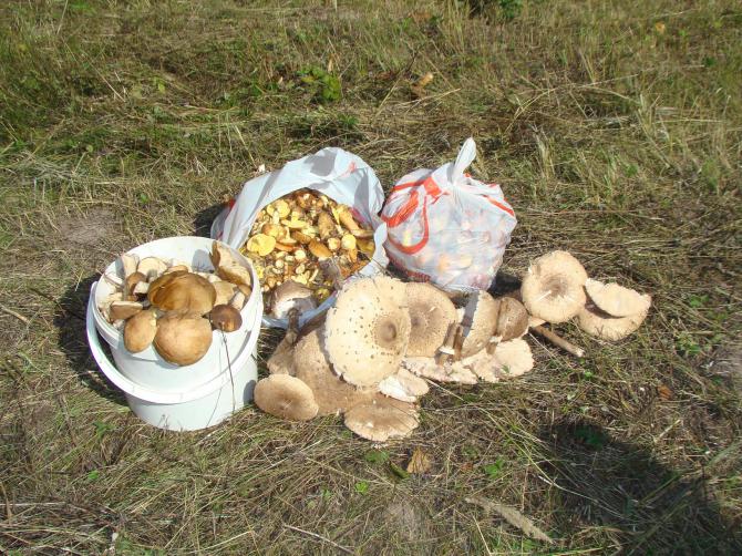 Но все равно немного набрали, в основном маслята(2 ведра), калибр ну очень мелкий, бутузы только вылезли, самая вкуснятина Хотя их немеряно, можно косить просто. Ведро подберезовиков (в перемешку с польским грибом), ну и зонтов штук 20. Сегодня готовил их в первый раз, был очень приятно удивлен, оказывается эти "поганки" обалденно вкусные и готовятся очень быстро.