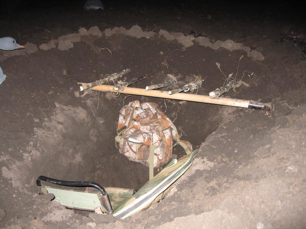 а бывает копаешь и тут же яма заполняется водой - тогда только скрадок