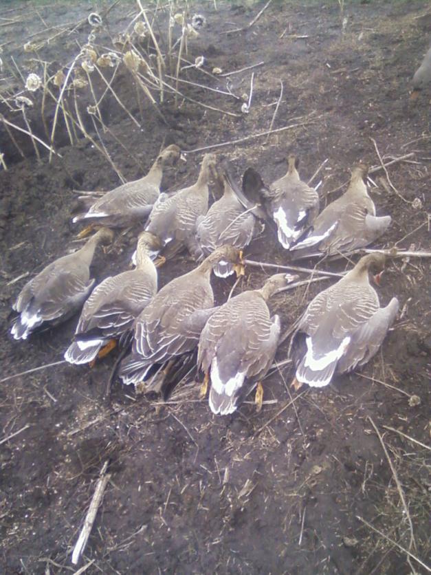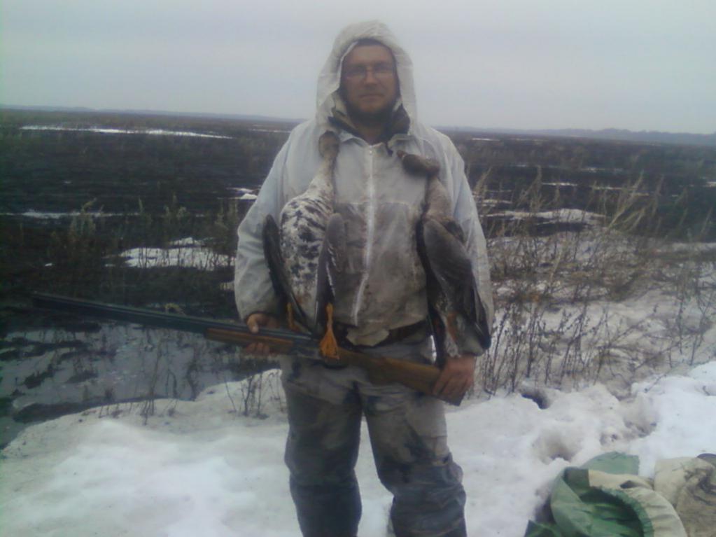 По второму фото: если на поле(болоте, луге....) есть хоть немного снега (как на фото) окоп не копаю, одеваю масхалат, под себя пленку(чтобы не промакал коврик), коврик(желательно белого цвета), делается небольшой бруствер и ....если не двигаться при подлете гусаки тебя не замечают, садяться прим на мушку...