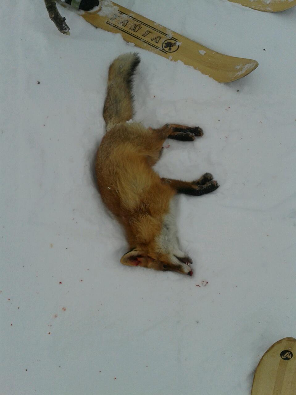 Выехали рано,благо сейчас уже в 7-30 светло.Первым же загоном взяли лиса.Воодушевленные, пошли "бороздить просторы мирового океана".Подняли заю,которому я "отсалютовал" двумя залпами,после чего он,пообещав дать многочисленное потомство, скрылся в густом ельнике.