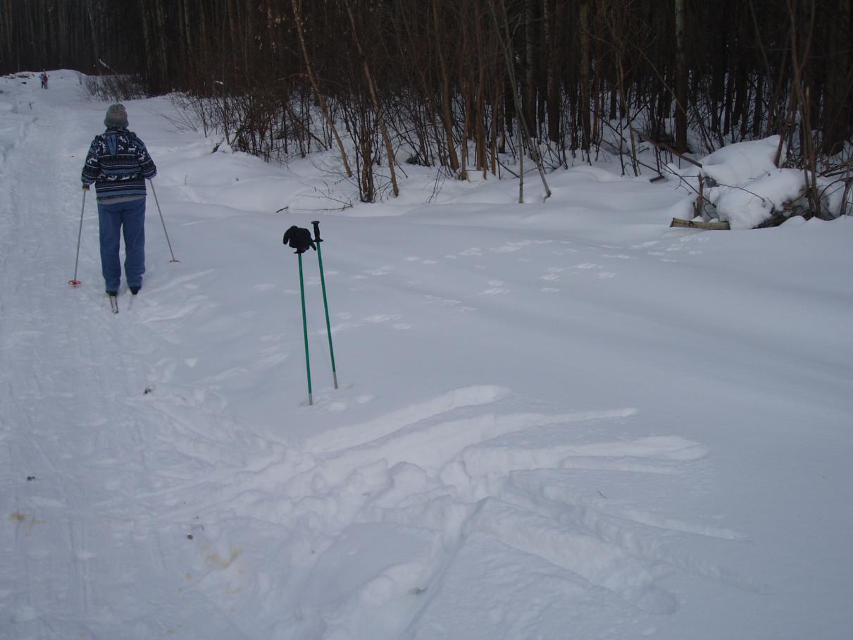 Только-что вернулся с лыжной прогулки. Катался в роще недалеко от спортивной базы Чайка. Поднял русака рядом с домом для отдыха, в пяти метрах от лыжни. Народа полно, музыка раздаётся - ничего не боятся ушканы- всё истоптали. Смотрел по карте, вроде бы Волжское ОДУ.