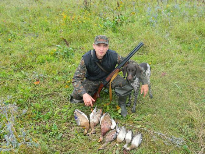 Прибрежья лесной речки пойменные, хламные, местами подтопленные бобрами, с множеством поваленных деревьев и мелким лиственным кустарником. Пробираясь до первого озерца-старицы, Митяй запнулся о предательски торчащий корень, тело пошло вперед, рука ловила опору в воздухе но не ходила её, и он с размаху успев сгруппироваться упал на локоть, какая то ветка больно щелкнула по лицу. Грязный, с матерками он продолжал свой путь. Старица оказалась «пустой», как в прочем и все последующие. Димка, осознавая безрезультатность своего мероприятия, решил проверить лесные канавы и направился прочь из поймы. Метров пятьсот от речки и местность не такая уже буреломная. Полу заросшие осокой канавы, шли прямо через лес, в них любила затаиваться утка. Не успел Митяй подойти к первой лужицы, как «Лора» вспугнула пару кряковых, и они недовольно захлопали крыльями, поднимая свои зажиревшие тушки в воздух. Сквозь деревья стрелять не удобно и охотник лишь проводил их взглядом. Ну ладно дичь есть уже что-то. Митяй шел по воде с краю, собака пробиралась впереди челноком, режа себе нос в островках осоки. Через сто метров еще подъем, пара крякая и ругаясь, на возмутителей спокойствия, медленно набирает высоту. Стрелять в угон просто, и Митяй немного отпустив, выцелил одну, затем вторую. Собачка сработала на подачу, и две птицы утяжелили Митькин рюкзак. Настроение сразу на подъем, продолжаем… За полчаса Димка выполнил дневную норму, последним дуплетом выбив трех чирков, и довольный направился к палатке варить шулюм, только сейчас заметив, что ноет плечо и рука.