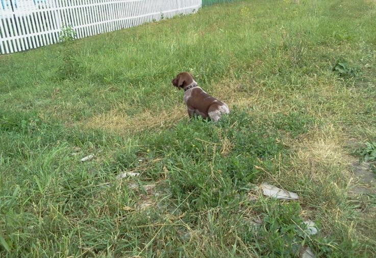 Щенок растёт.Думаю что в августе его уже можно будет натаскивать.Отец щенка рано начал в поле работать,мать тоже.Хозяина хорошего бы ему!!!