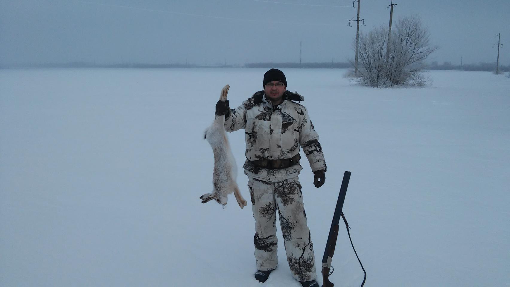Думали вернемся пустыми. А очень хотелось посмотреть на ушастого . На обратном пути (метров за 300 до края села) косой попал под перекрестный огонь.