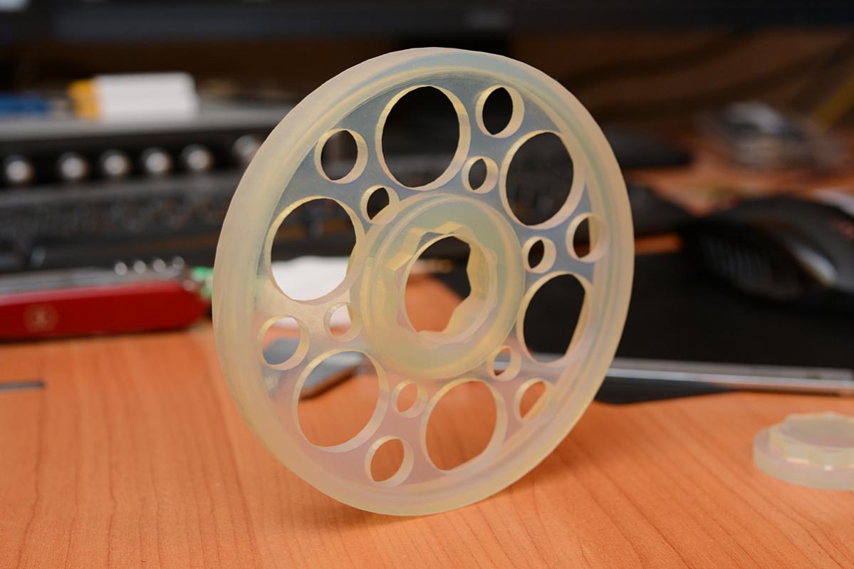 Может печатать слоями из материала типа пленки прозрачной. В конечных деталях достаточно сильная анизотропия мех.свойств - вдоль слоев это очень прочный материал, слои между собой склеены - на разрыв тут прочность поменьше. Стол примерно с А4 размером и в высоту около 20см. Печатает медленно. 100 слоев около 6 часов. Заказы не принимаются, т.к. аппарат в опытной эксплуатации и гарантии результата никто не даст. Но ценник будет на выходе не очень дружелюбный, расходники весьма дорогие.