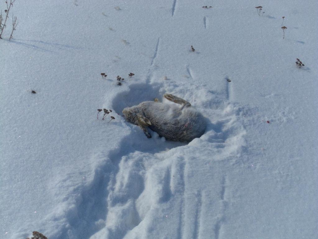 Судя по последним фоткам, дробушка была не мелкая! И, некоторые дробины благополучно отрикошетили от наста! АХТУНГ!