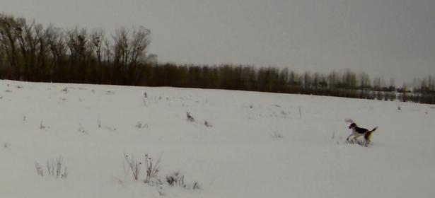 Вчера полдня бродили по полям - оврагам. Следов уйма за ночь. Наст толстенный, человека держит, а уж про зайцев и говорить не приходиться - как по асфальту бегают. Солнце палило (сильно от снега отражалось), пожалел, что очки солнцезащитные не взял, до сих пор мушки перед глазами. Не одной лёжки не нашли. Улетают что ли на день?!