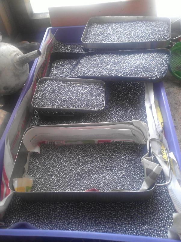 от 1 до 6 только потому что могу игольчатым краном регулировать скорость( и соответственно размер ) потока Сплава через отверстие независимо от количества свинца в емкости А начинал похожим образом! |
