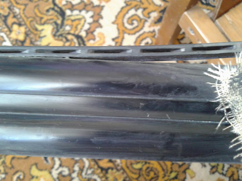 Потом пробовал царапать вилкой без усилия. Остались только полосочки бледные. До металла не процарапал. Так же обратной стороной этого ножа поцарапал ствол.