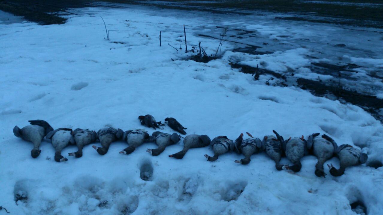 Открылся неплоxо.Вечерка один гуменник и один по темноте подранок.Как упал слышал я и напарник.Облазили с налобником пол поля,не нашли.Сегодня праздник,с утра скатался только на разведку.Стрелял фьечи 1 в контейнере,но ветер был шквальный,отсюда и промаxи.Утки можно было набить прицеп,но договоренность была стрелять только по гусю,да и уток у меня семья не жалует.А стрелять и раздавать каждый раз тоже не дело.