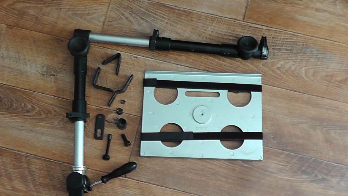 Все элементы кронштейна, включая полку - подставку с размерами 320 х 230 мм изготовлены из легкого и прочного алюминиевого сплава.