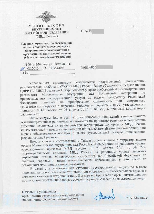 По умолчанию Разрешение на нарезное в Районных разрешиловках