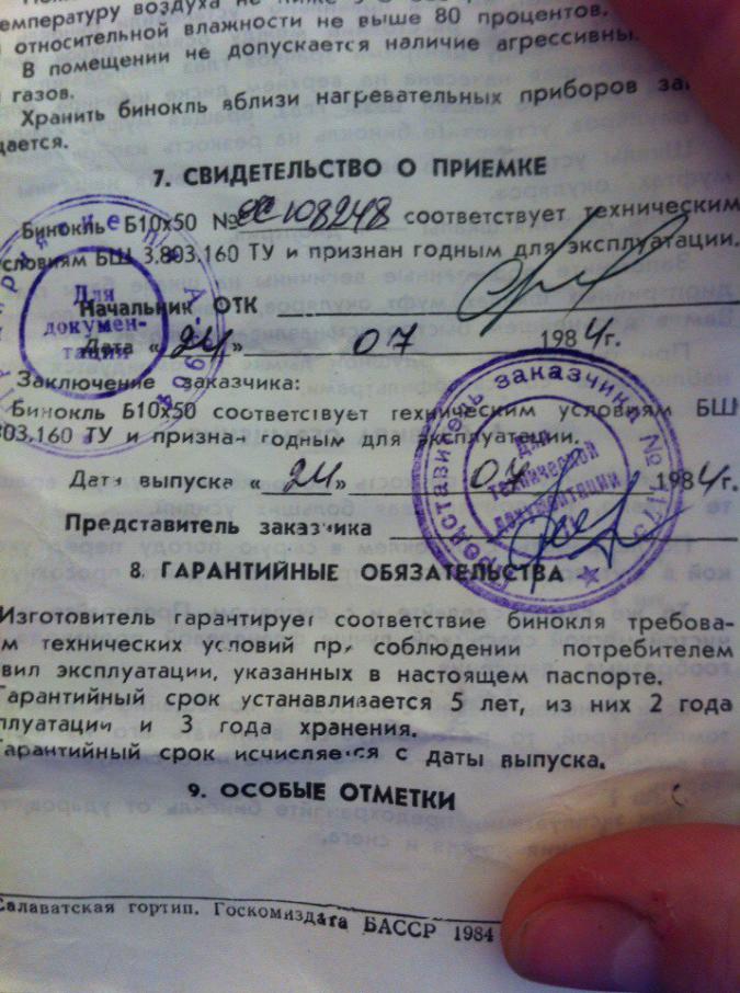Знакомый продает бинокль Б 10х50 с сеткой, угломером 1984г. выпуска, Салаватский завод, с кофром, паспортом. Бинокль не использовался, потому состояние оптики и внешний вид - идеальные.Кольца объективов выполнены из металла.