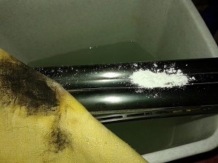 И так! налил я в ведро горячей воды из под крана, для страху решил сыпануть туда пемолюкса. постояло минут 10. взял крутой кипяток и полил на ствол, протер тряпочкой.она только чуть испачкалась.