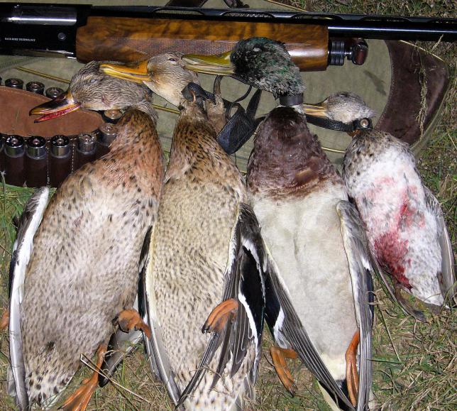 Я в выходные то же отметился. Правда без фото... Вообщем выехал в субботу рано утром. На лодке прошел до понравившегося островка, раскидал рядом чучела, затащил лодку в камыш, на сколько смог, и ну пошел крякать в два манка...) Утка моталась из угла в угол. Мой итог из двух налетевших пар выбил двух красивых (полностью выцвевших) селезней. Стрелял самокрутом в контейнере на Сунаре 35, дробь 5-ка Бийск. В тушках 6 и 9 дробин. Ну и главный вывод - ускорить прибытие масксети для лодки, хоть камышом закидывай, хоть весла открути и т.п., видит утка лодку...(((
