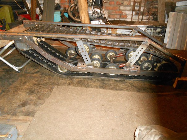 И это снег в твоей конструкции будет всегда с тобой ездить пока не разопрет гусеницу и двигатель перестанет тянуть... Представь сырой набьется как вытаскивать и какой вес будет при этом - гусеница должна самоочищаться!!! И профиль бери 20/20 на 2... сделай трубогиб для квадратной трубы чертежи есть у меня дам если надо.... и.... все у тебя получиться да и соблюдай "культуру веса", а то ездить будешь только по дорожкам да насту...
