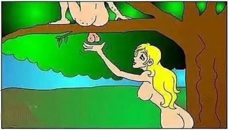 Адам с Евой резвятся в саду, спускается к ним Бог и говорит:
