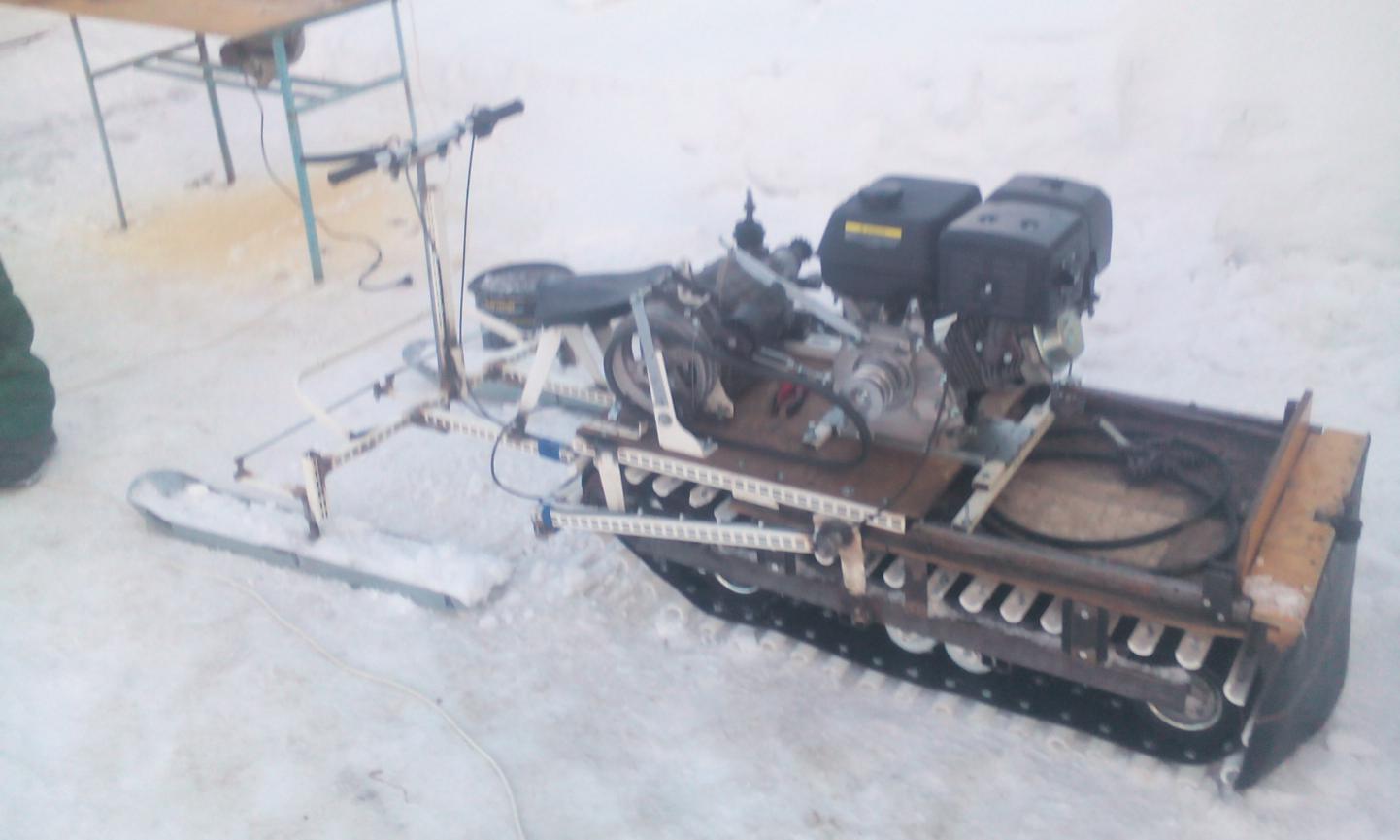 Установили нормальный привод дроссельной заслонки, из рулевого кардана и вала сделали фаркоп и дышло саней, поменяли свечу и немного покрутили карбюратор.