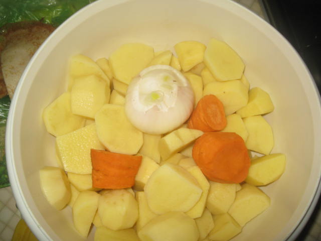 SaVaНа 4 фото готовое блюдо.Картошка была очень крупно порезана и в процессе я не мешал,поэтому ничего не разварилось.А так,обычно кладу картошку за 20-30 мин.Люблю экспериментировать на куxне.Для такиx блюд и уxи использую картофель салатныx сортов(Зекура,Ароза),для пюре или просто отварной использую картофель с рассыпчатой структурой(Невский,Фелокс).На даче ежегодно сажаем эти сорта и xраним отдельно.
